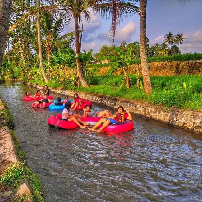 Wahana tubing Lazy River dibangun 2018. Pengelola melihat saluran irigasi di Penarungan masih bersih dari sampah dan tidak berbatu. Potensi itu kemudian dikembangkan jadi wahana air.