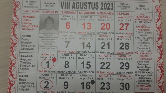 Berikut ala ayuning dewasa Anggara Wraspati Paing Medangsia atau Kamis 24 Agustus 2023. Berdasarkan perhitungan kalender Bali sebagaimana dikutip dari kalenderbali.org.
