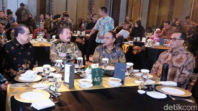 Jaksa Agung ST Burhanuddin hingga Ketua MPR Bambang Soesatyo hadir dalam acara itu. Pantauan detikcom di The Westin Jakarta Selatan, Jumat (5/7/2024) ST Burhanuddin tiba pukul 19.00 WIB. Burhanuddin mengenakan batik cokelat sementara Bambang Soesatyo mengenakan batik biru.