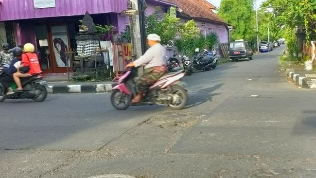Beberapa jalan berlubang di sepanjang jalan Veteran Denpasar cukup mengganggu pengendara sepeda motor. Apalagi, salah satu lubang yang cukup lebar dan dalam terdapat di bagian tengah jalan.