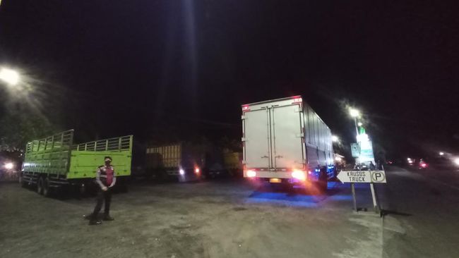 Guna mengurangi kepadatan di Pelabuhan Gilimanuk, angkutan barang non logistik yang sedang melintas di jalur mudik Denpasar-Gilimanuk pada Jumat (29/4/22) malam banyak yang dihentikan dan 'ditahan' sementara perjalanannya.