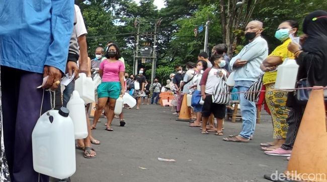 Dalam acara tersebut, minyak goreng curah dijual sesuai harga yang ditentukan pemerintah. detikBali tiba di lokasi gebyar 2 ton minyak goreng curah tersebut sekitar pukul 07.00 WITA. Saat itu warga sudah terlihat mengantre cukup panjang, padahal acara pembagian minyak goreng belum dimulai.