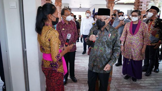 "Hari ini saya berkunjung ke Pantai untuk melihat UMKM dan saya melihat bahwa kegiatan ekonomi masyarakat di Bali khususnya di Kuta ini sudah mulai tumbuh [kembali]," terang Wakil Presiden (Wapres) K.H. Ma'ruf Amin ketika memberikan keterangan pers usai meninjau Kawasan UMKM di Pantai Jerman, Badung, Bali, Selasa (10/5/2022).