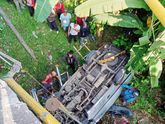 Tiba di tempat kejadian perkara, ketika melewati tikungan landai ke kiri tiba-tiba kendaraannya bergerak oleng ke kiri, kemudian menabrak besi pelindung jembatan sebelah kiri, sehingga kendaraan terperosok jatuh ke bawah jembatan.