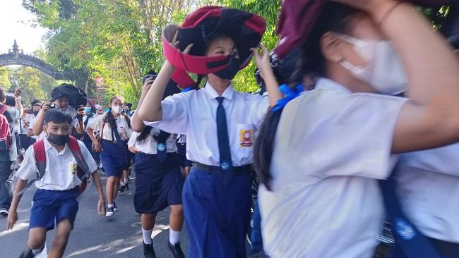 "Dari kemarin sudah siap-siap untuk latihan sekarang panik takut kalau gempa yang sebenarnya terjadi," kata Intan pada detikBali.