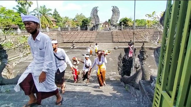 Sementara itu, persembahyangan dilakukan secara bergelombang sehingga pura tidak terlihat penuh dalam satu waktu. "Pemedek tidak datang bersamaan," ujarnya.