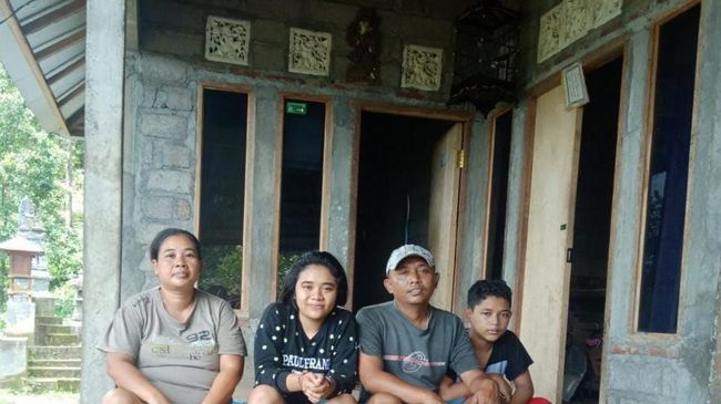 "Saya dua bersaudara, anak pertama. Kalau orang tua itu kerja sebagai buruh tani, dengan penghasilan Rp 750 ribu per bulan, kondisi rumah itu dulu masih memakai rotan (bedeg) kalau sekarang sudah dengan batako" terangnya saat ditemui di rumahnya di Banjar Dinas Bukit Sari, Desa Tegalinggah, Kecamatan Sukasada, Kabupaten Buleleng, Bali, Minggu (19/6/2022)