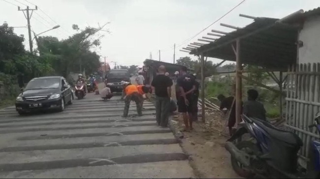 Dikatakan Yono, 'polisi tidur' yang dibuat di lokasi itu ada 20 baris di sepanjang jalan 20 meter.