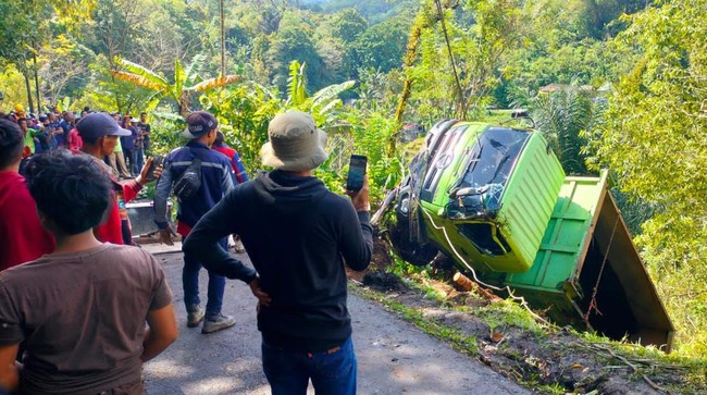 Akibatnya, ban kiri belakang truk tersebut masuk ke bibir tebing. Selanjutnya, truk itu jatuh ke jurang dan tersangkut pada sebatang pohon cempaka.