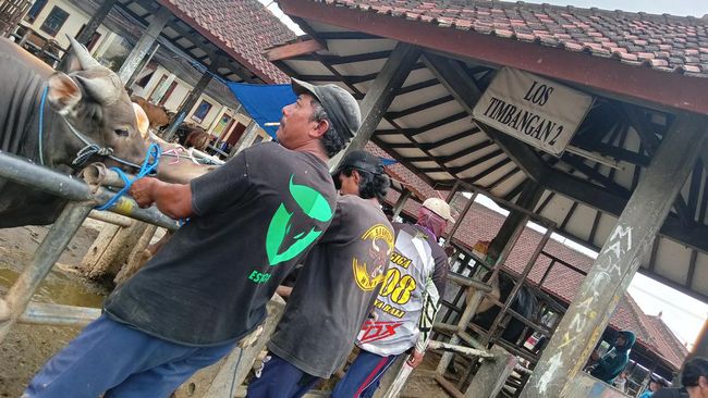 Dari pantauan detikBali, Minggu (3/7/2022), pasar hewan yang berada di Kecamatan Mengwi, Badung, Bali, ini masih beroperasi normal. Para pengepul dan peternak sapi tampak ramai mengunjungi Pasar Hewan Beringkit. Mereka datang untuk bertransaksi jual beli sapi.