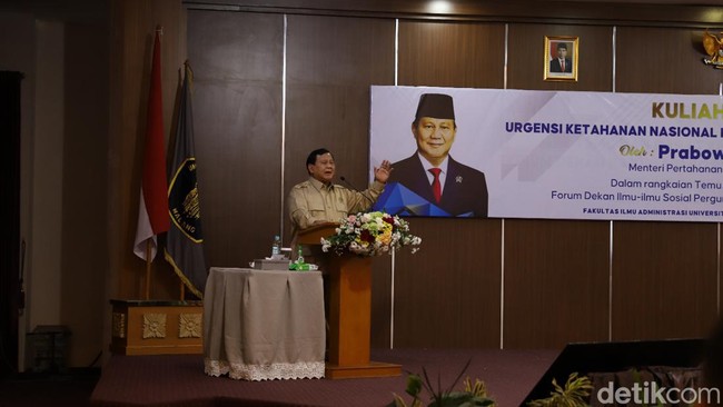 "Alhamdulillah ada komitmen dari para guru besar untuk bekerjasama dengan kementerian pertahanan, bersinergi. Kita juga berharap masalah ketahanan juga dikaji di perguruan tinggi," kata Prabowo memberikan kuliah umum di Universitas Brawijaya (UB) Kota Malang, Minggu (3/7/2022).
