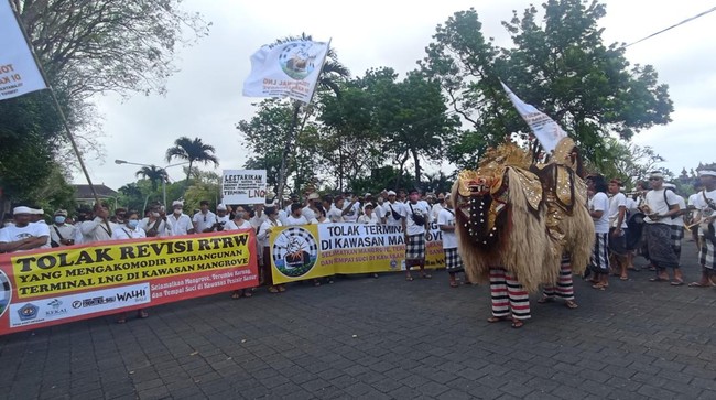 Untuk diketahui, aksi yang digelar kali ini bertajuk "Ngentenin Gubernur". Mereka mempertanyakan kesimpangsiuran lokasi pembangunan terminal LNG di kawasan mangrove. Sebab Gubernur Bali Wayan Koster dan PT Dewata Energi Bersih (DEB) dinilai menyampaikan keterangan yang berbeda terkait lokasi proyek terminal LNG. Sebelumnya mereka telah beberapa kali turun ke jalan menggemakan penolakan terminal LNG di kawasan mangrove.