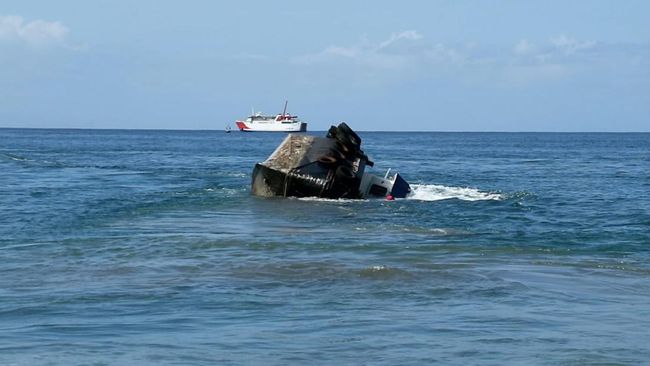 Kapal tugboat yang terdampar di perairan Tanah Ampo, Desa Ulakan, Kecamatan Manggis, Kabupaten Karangasem, Bali, hari ini, Kamis (14/7/2022), dievakuasi. Namun ada insiden kapal tersebut tenggelam usai berhasil dievakuasi.