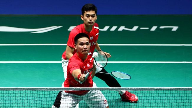 Final ganda putra Singapore Open 2022 mempertemukan Fajar Alfian/Muhammad Rian Ardianto dengan Leo Rolly Carnando/Daniel Marthin di Singapore Indoor Stadium, Minggu (17/7/2022) sore.