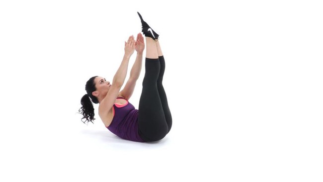 Setelah itu, angkat kedua kaki hingga tubuh membentuk sudut 90 derajat dan perlahan turunkan kembali. Tepat sebelum menyentuh lantai, angkat kaki lagi ke posisi sebelumnya. Lakukan hal itu sebanyak 3 set 15 repetisi.