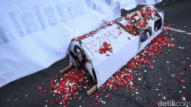 "Ini keranda menandakan kematian dari para menteri-menteri para pengurus-pengurus negara ini yang sudah tidak becus," kata salah satu orator.