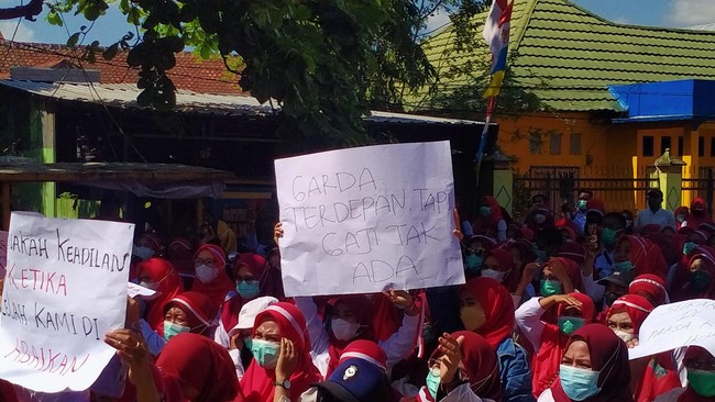 "Kepastian pendataan non-ASN, bagaimana dengan kami yang sukarela dan kapitasi. Tenaga kami yang dibutuhkan oleh daerah, tuntutan kami, kita didata jangan di beda-bedakan dengan SK Bupati," teriak mereka.