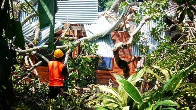Saat kejadian, penghuni rumah sedang terlelap tidur. Akibat tertimpa pohon wani, atap rumah milik Sumerta ambles dan rusak parah.