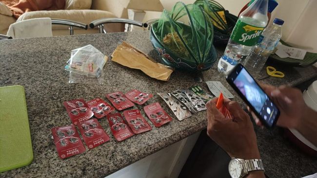 Petugas menemukan berbagai macam obat-obatan di lokasi tewasnya WN Australia tersebut, yakni sembilan pepel bungkus Bodrex Extra, satu pepel Telfast 120 (sisa dua kapsul), satu pepel Ibuprofen 200 mg (sisa dua kapsul), Lameson Methylprednisolone (sisa satu kapsul), satu pepel Laxing (sisa empat kapsul) dan satu pepel Astrovastatin 50 mg yang masih utuh.