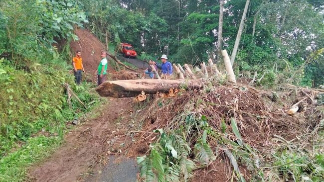 "Ada 5 titik longsor yang membutuhkan bantuan alat berat dalam penanganannya karena material longsoran sangat banyak selain itu juga terdapat beberapa akar kayu yang cukup besar sehingga tidak mungkin bisa hanya dengan menggunakan peralatan manual," kata Eka Tirtana, Minggu (9/10/2022).