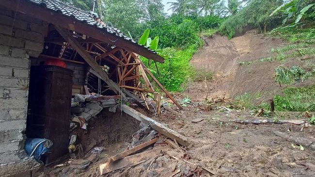 Pantauan detikBali, setengah dari rumah Mega Antara yang berukuran sekitar 6x8 meter ambruk. Yang tersisa hanya setengah dari bagian depan rumahnya.