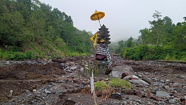 Bahkan, Oka mengaku dirinya menyaksikan langsung saat bebatuan besar terbawa arus banjir bandang dari atas. Namun, material banjir bandang itu seolah berhenti di belakang pelinggih padma.