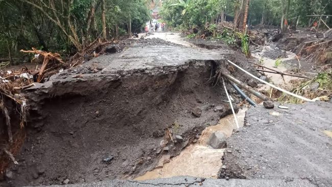 "Kejadiannya sekitar pukul 16.00 WITA. Karena aliran air sangat deras membuat jembatan yang berada di Banjar Mumbul jebol," kata Waskita, Selasa (25/10/2022).