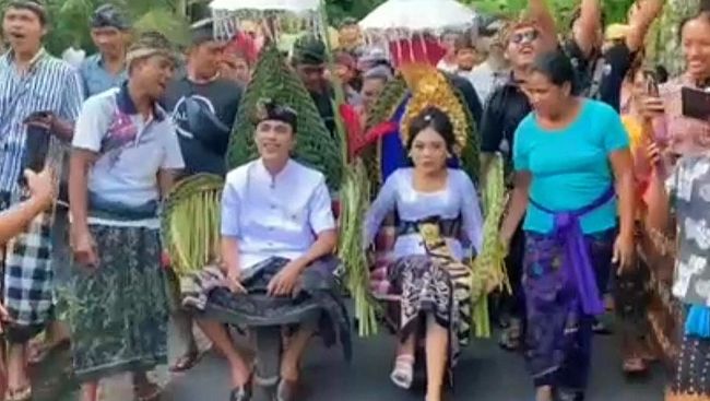 Pasangan pengantin Waspada dan Nanik dari Banjar Dinas Kebung Kauh, Desa Telaga Tawang, Kecamatan Sidemen, Kabupaten Karangasem, Bali, viral di media sosial. Pasalnya, pasangan tersebut diangkut menggunakan gerobak atau yang kerap disebut 'arko' saat prosesi ngidih atau menjemput mempelai perempuan untuk dibawa ke rumah mempelai laki-laki.