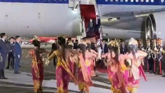 Seusai mendarat dan turun dari pesawat, Presiden Yoon langsung disambut tarian khas Bali. Tampak sejumlah pejabat mendampingi kunjungan Presiden Yoon itu. Perwakilan pemerintah Indonesia yang menyambut yaitu Menteri Dalam Negeri Tito Karnavian.