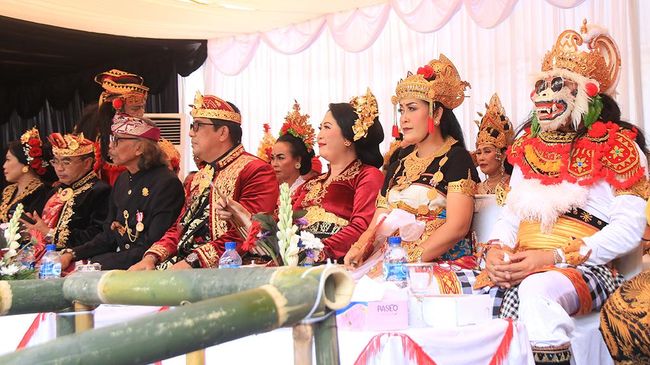 Sanjaya dan istrinya mengenakan pakaian pengantin Bali yang dimodifikasi, begitu juga dengan Wabup Made Edi Wirawan dan istrinya. "Ternyata susah jadi seniman. Buktinya saya ikut jalan. Ikut parade sama teman-teman. Berat ini pakaiannya. Gelungannya," aku Sanjaya.