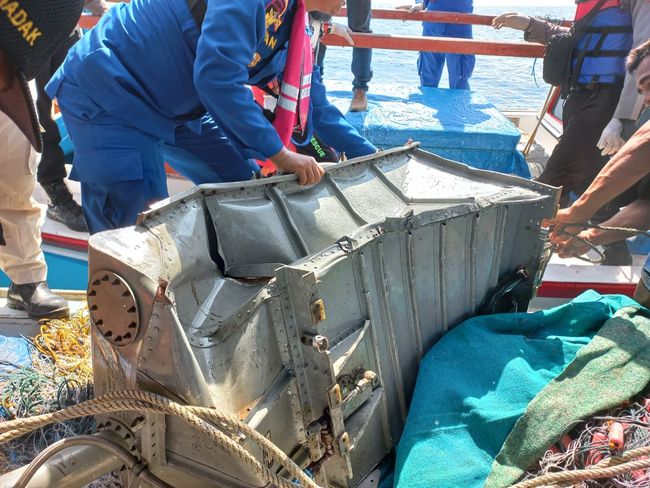 Jok kursi berbentuk bantalan segi empat tersebut telah dievakuasi di Pos Manggar. "Ada beberapa debris yang terlihat, namun yang diambil hanya tiga buah jok," ucap Imade.