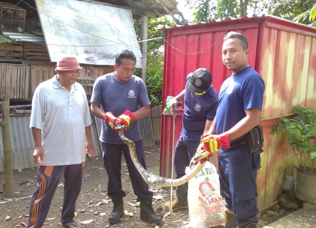 Dinas Pemadam Kebakaran dan Penyelamatan (Damkartan) Kabupaten Karangasem mengevakuasi dua ekor ular, Kamis (1/12/2022). Kedua ular tersebut meresahkan lantaran kerap memangsa hewan ternak hingga masuk ke dapur warga.