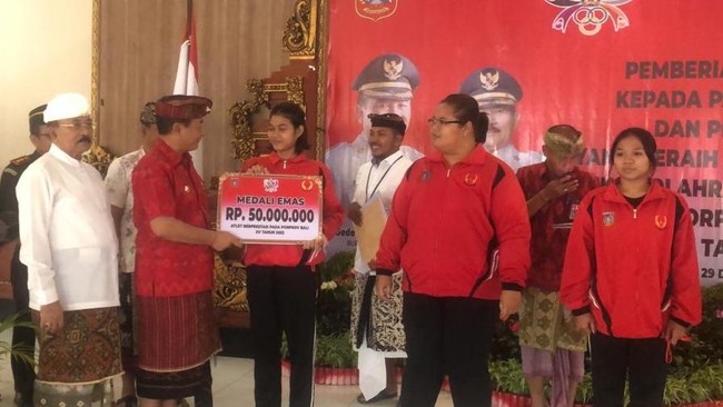 Meski menjadi juru kunci, para atlet yang meraih medali di ajang Porprov Bali 2022 tetap mendapatkan bonus dari Bupati Karangasem. Bonus yang digelontorkan mencapai Rp 1.448.625.000.