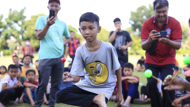 Acara car free day (CFD) atau hari bebas kendaraan pertama pada tahun ini di Klungkung itu menjadi meriah oleh suara khas lato-lato. Puluhan anak beradu ketangkasan main lato-lato dengan bermacam gaya.