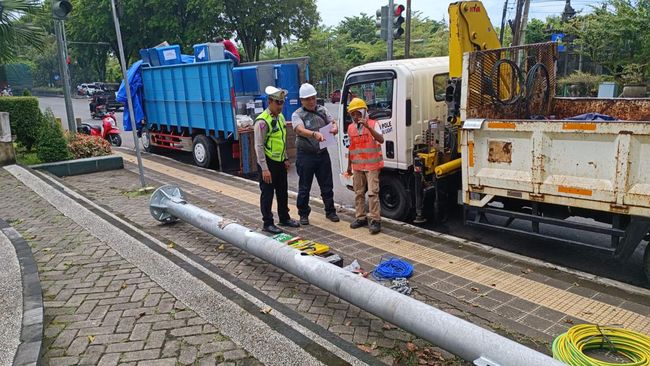 Polisi mulai memasang tiang untuk kamera monitoring dan Electronic Traffic Law Enforcement (ETLE) di Jembrana. Jika tidak ada aral melintang, pengoperasiannya akan berlaku mulai Mei 2023 mendatang.