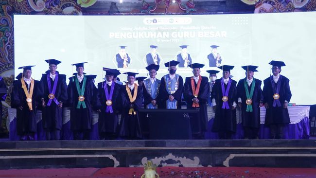 Universitas Pendidikan Ganesha (Undiksha) mengukuhkan sebanyak 17 guru besar melalui sidang senat terbuka. Kampus ini mempunyai target 100 profesor hingga tahun 2025.