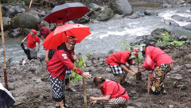 Pengurus Dewan Pimpinan Cabang (DPC) PDIP Tabanan menanam ratusan pohon di area Pura Manik Toya dan sepanjang aliran sungai atau Tukad Yeh Sungi, Desa Batannyuh, Desa Belayu, Kecamatan Marga pada Sabtu (28/1/2023).