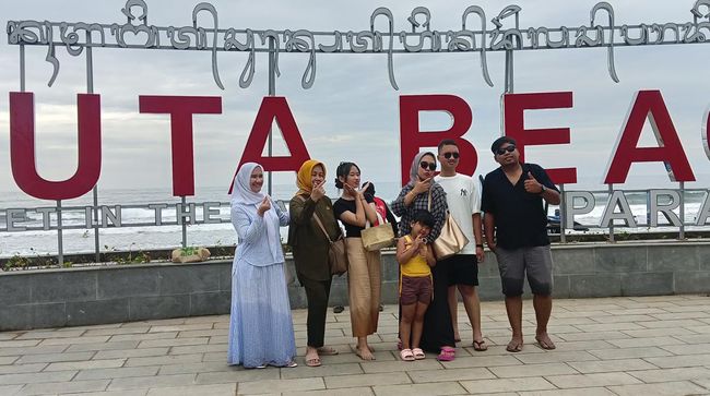 Seorang pekerja mulai melepas kain yang menutup di papan nama pantai tersebut pada Kamis (2/2/2023) siang. Sejumlah wisatawan domestik dan mancanegara pun mendekat. Mereka menjadikan papan nama pantai yang masih baru tersebut sebagai latar berfoto.