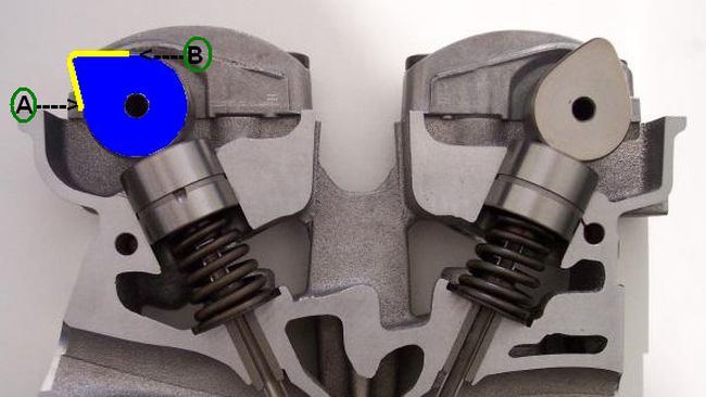 Kemudian bahan bakar dan udara masuk ke ruang bakar. Tonjolan lainnya lalu mendorong klep ex dan menyebabkan gas sisa pembakaran yang dihasilkan akan dibuang. Besar kecilnya tenaga yang dihasilkan bergantung pada ketepatan dari durasi buka tutup klep tersebut.