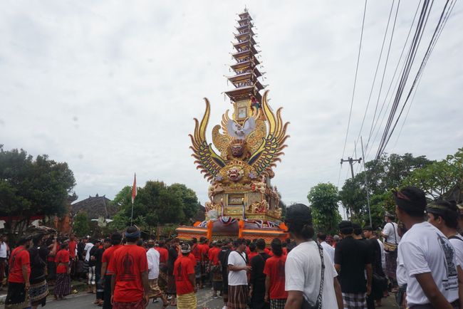 Selain menggunakan Bade untuk mengarak jenazah, keluarga Puri juga memakai petulangan atau tempat pembakaran jenazah berbentuk naga atau naga kaang. "Ini sesuai dresta atau tradisi kami di Puri, jadi palebon menggunakan naga," jelas Inda Trimafo Yudha.