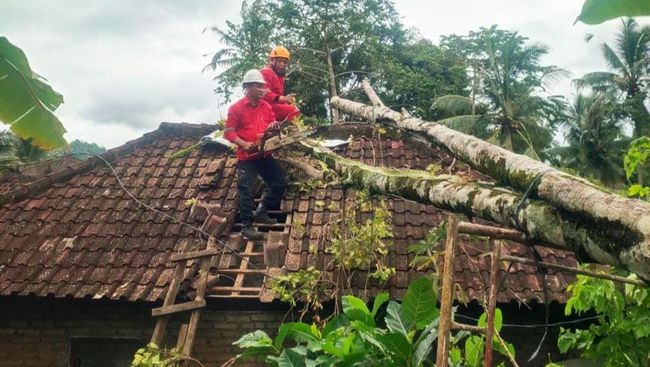 "Begitu pohon tersebut tumbang, pemilik rumah yang hanya tinggal berdua di sana langsung terbangun dan mendapati atap rumahnya sudah rusak," kata Eka Tirtana, Selasa (14/2/2023).