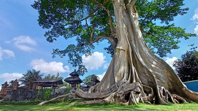 "Lagi perbaikan palinggih taksu, padmasana, dan sekarang ini yang lagi dibangun adalah balai paruman. Perbaikan ini setelah kemarin kena timpa dahan pohon yang patah," beber Kurna.