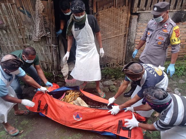"Saat ditemukan sudah dalam keadaan membusuk dan penuh belatung (langsung) dibawa menuju kuburan dan saat ini mendiang sudah dimakamkan," ungkap Alit.
