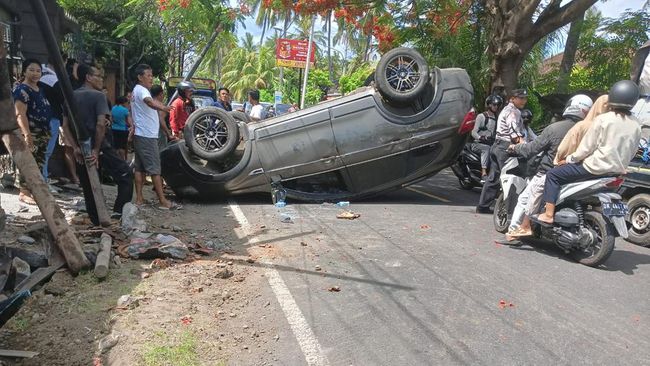 Mobil Chevrolet Captiva dengan nomor polisi Bogor F 1768 LG yang dikemudikan Made Kartika Suryawan (41) terbalik di Desa Antiga Kelod, Kecamatan Manggis, Karangasem. Sopir asal Kediri, Jawa Timur, itu menabrak tiang Telkom dan pagar rumah warga.