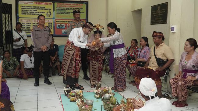 Prosesi pernikahan atau pawiwahan antara I Kadek Pradana Putra dengan sang kekasih berinisial SP digelar secara Hindu. Keluarga kedua mempelai terlihat sejak pagi berada di area sel tahanan Polresta Denpasar.