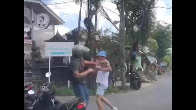 Namun, dari video yang dilihat detikBali, dua bule laki-laki itu awalnya saling tinju. Satu di antaranya mengenakan topi dan kaus tanpa lengan. Sementara, seorang lainnya memakai helm dan menggendong ransel.
