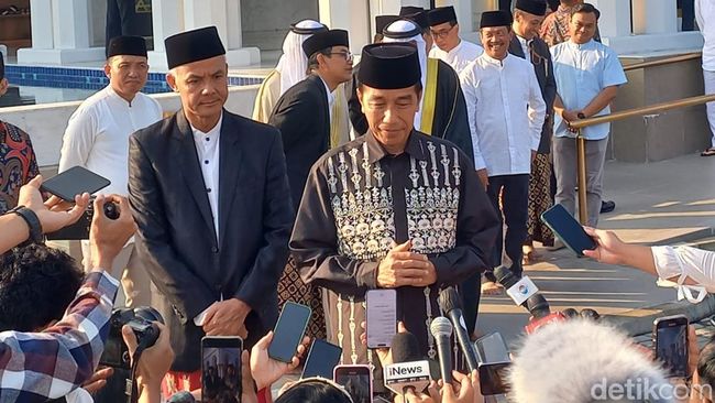 Presiden Joko Widodo (Jokowi) melaksanakan salat Idul Fitri di Masjid Syeikh Zayed, Solo, bersama calon presiden (capres) Ganjar Pranowo. Ketika ditemui awak media, Jokowi ditanya soal calon wakil presiden (cawapres) yang akan mendampingi Ganjar.