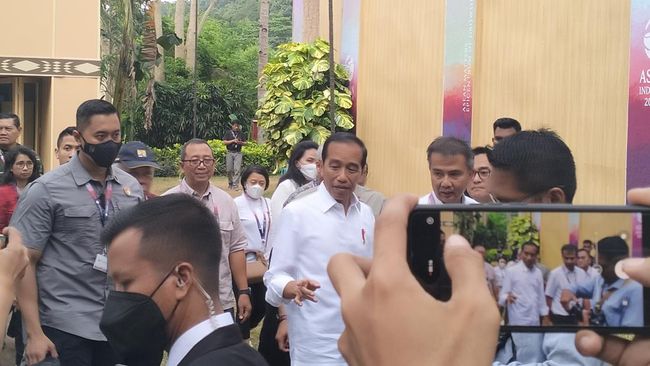 Presiden Joko Widodo (Jokowi) meninjau media center KTT ASEAN di Hotel Bintang Flores, Labuan Bajo, Kabupaten Manggarai Barat, Nusa Tenggara Timur (NTT), Selasa (9/5/2023) pukul 13.00 Wita atau sehari menjelang agenda pertemuan para kepala negara di KTT ASEAN.