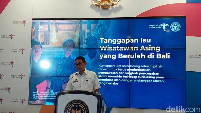 Menparekraf Sandiaga Uno buka suara soal viral video turis asing asal Denmark berinisal CAP (50) yang pamer kemaluan. Sandiaga menyatakan telah berkoordinasi dengan keimigrasian.