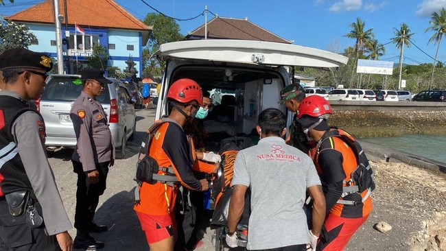 "Tim kembali ke Pelabuhan Banjar Nyuh pukul 15.30 Wita. Selanjutnya mayat korban laki-laki dibawa ke RS Gema Santi, Nusa Penida," terang Suwena.